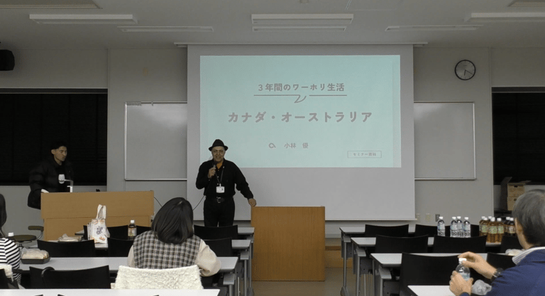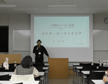 An experience sharing seminar was conducted with the Local and International students at Kyouritsu University on 26, Nov, 2025. A former student, Euro, shared his experience of working holiday visa and life in Canada and Australia.